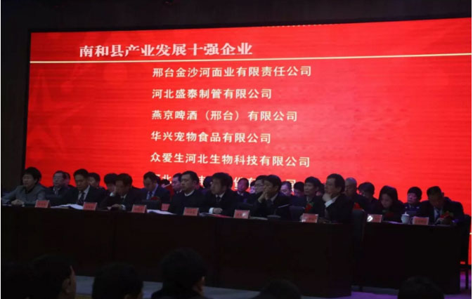 會議期間,頒發(fā)了多個獎項,各獲獎企業(yè)代表紛紛上臺領(lǐng)獎,縣委副書記、政府縣長韓明智同志為各企業(yè)頒獎。大會取得圓滿成功,與會企業(yè)深受鼓舞。華興寵物食品有限公司榮獲”南和縣產(chǎn)業(yè)發(fā)展十強企業(yè)“稱號。